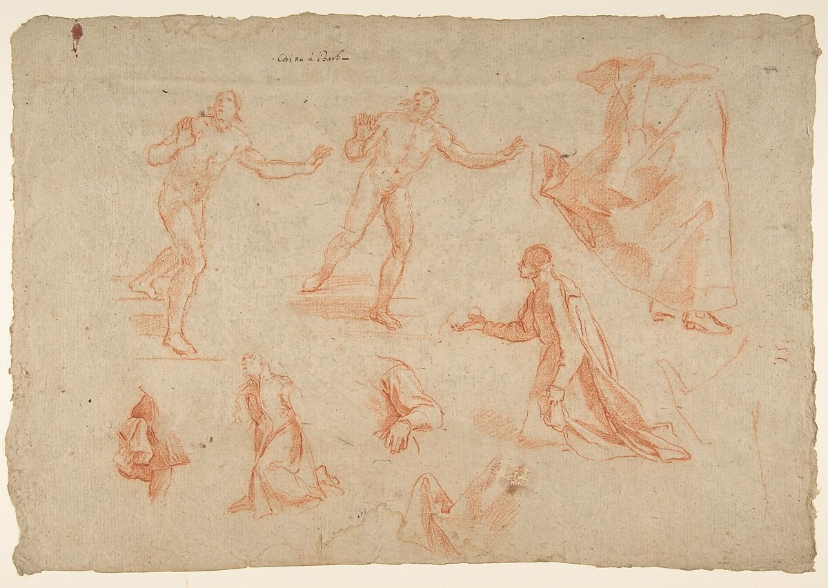- Title: Figure and Drapery studies (recto); Three Studies of a Male Torso for the "Coronation of Marcantonio Pasqualini'" (verso)