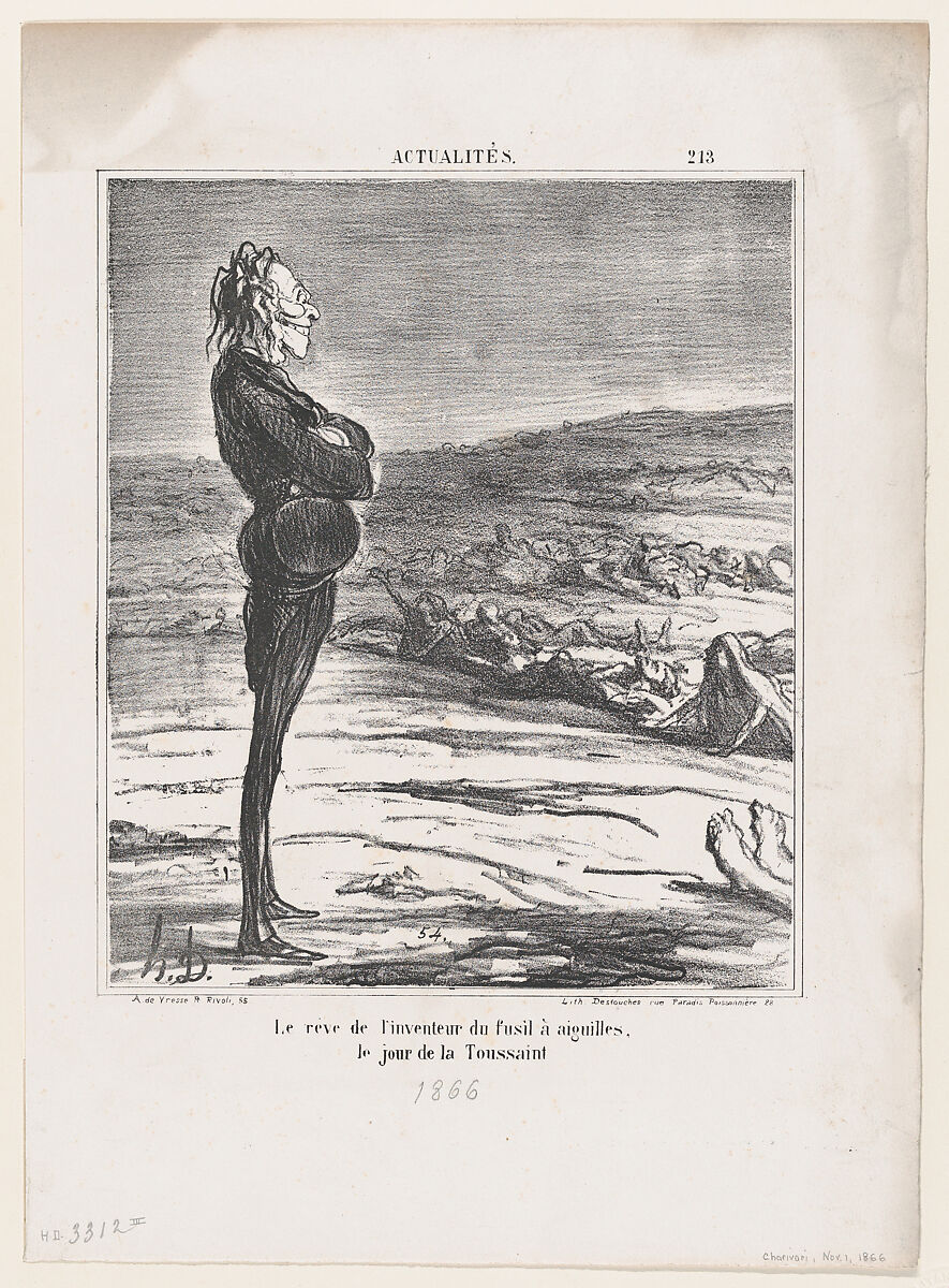 - Title: The dream of the inventor of the pin-gun on All Saints' Day, from 'News of the day,' published in "Le Charivari"