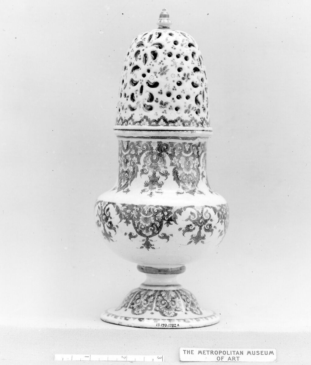 Faience, or tin-glazed and enameled earthenware, first emerged in France during the sixteenth century, reaching widespread usage among elite patrons during the seventeenth and early eighteenth centuries, prior to the establishment of soft-paste porcelain factories. Although characterized as more provincial in style than porcelain, French faience was used at the court of Louis XIV as part of elaborate meals and displays, with large-scale vessels incorporated into the Baroque garden designs of Versailles. Earlier examples of French faience attest to the strong influence of maiolica artists from Italy. Later works demonstrate the ways in which cities such as Nevers, Rouen, Lyon, Moustiers, and Marseille developed innovative vessel shapes and decorative motifs prized among collectors throughout Europe.