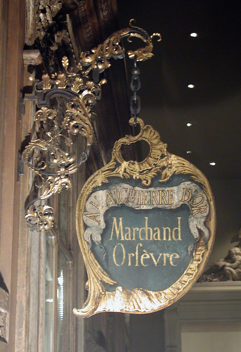 - Medium: Bracket: wrought iron, partly gilt; Sign: painted metal (modern)