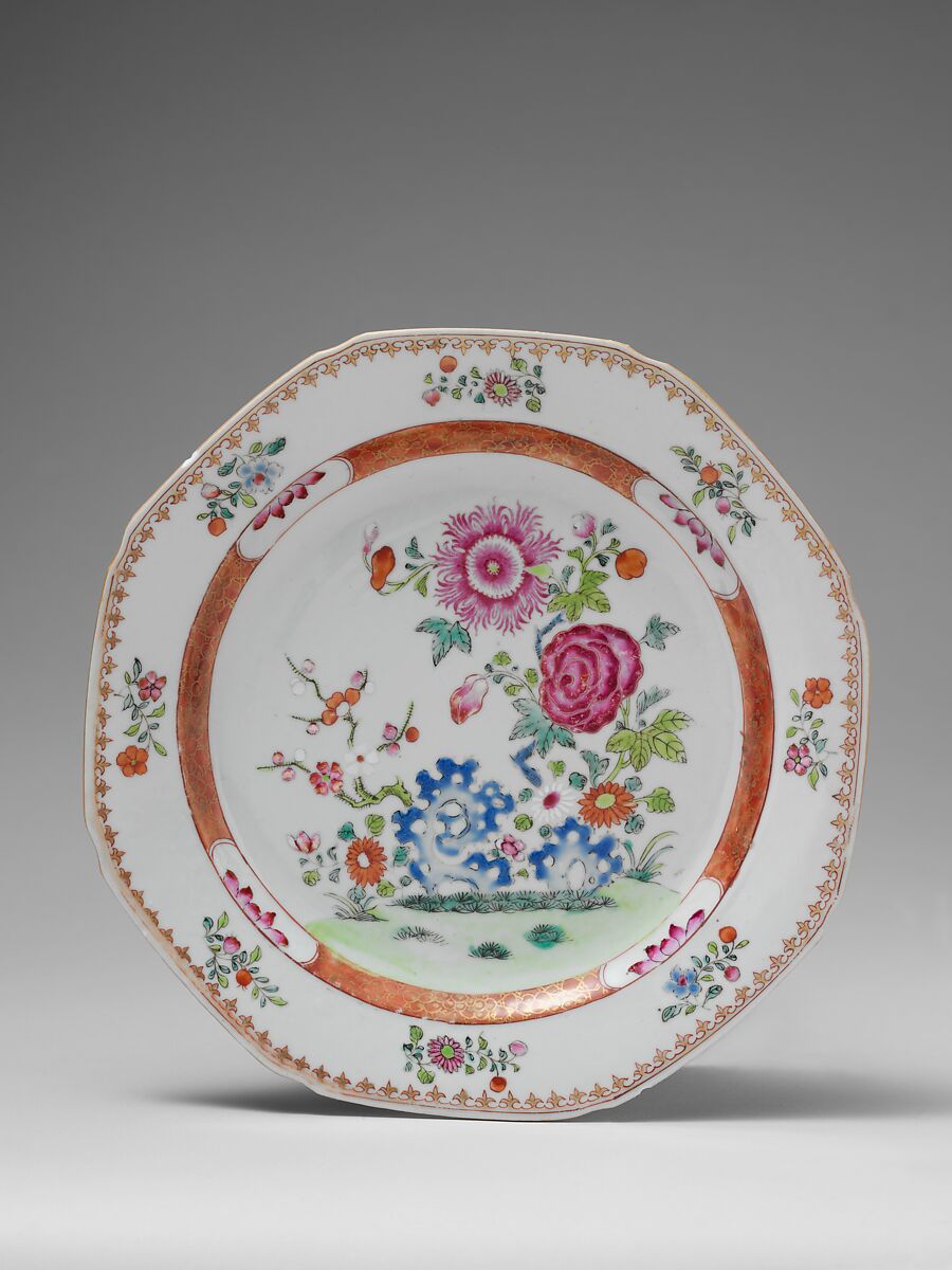 Chinese export porcelain was one of the luxuries deemed essential to a well-appointed eighteenth-century house. Until 1784, when direct trade began between China and America, Chinese porcelain came to the colonies by way of Europe. This soup plate was part of a large service that descended in the Verplanck family of New York.