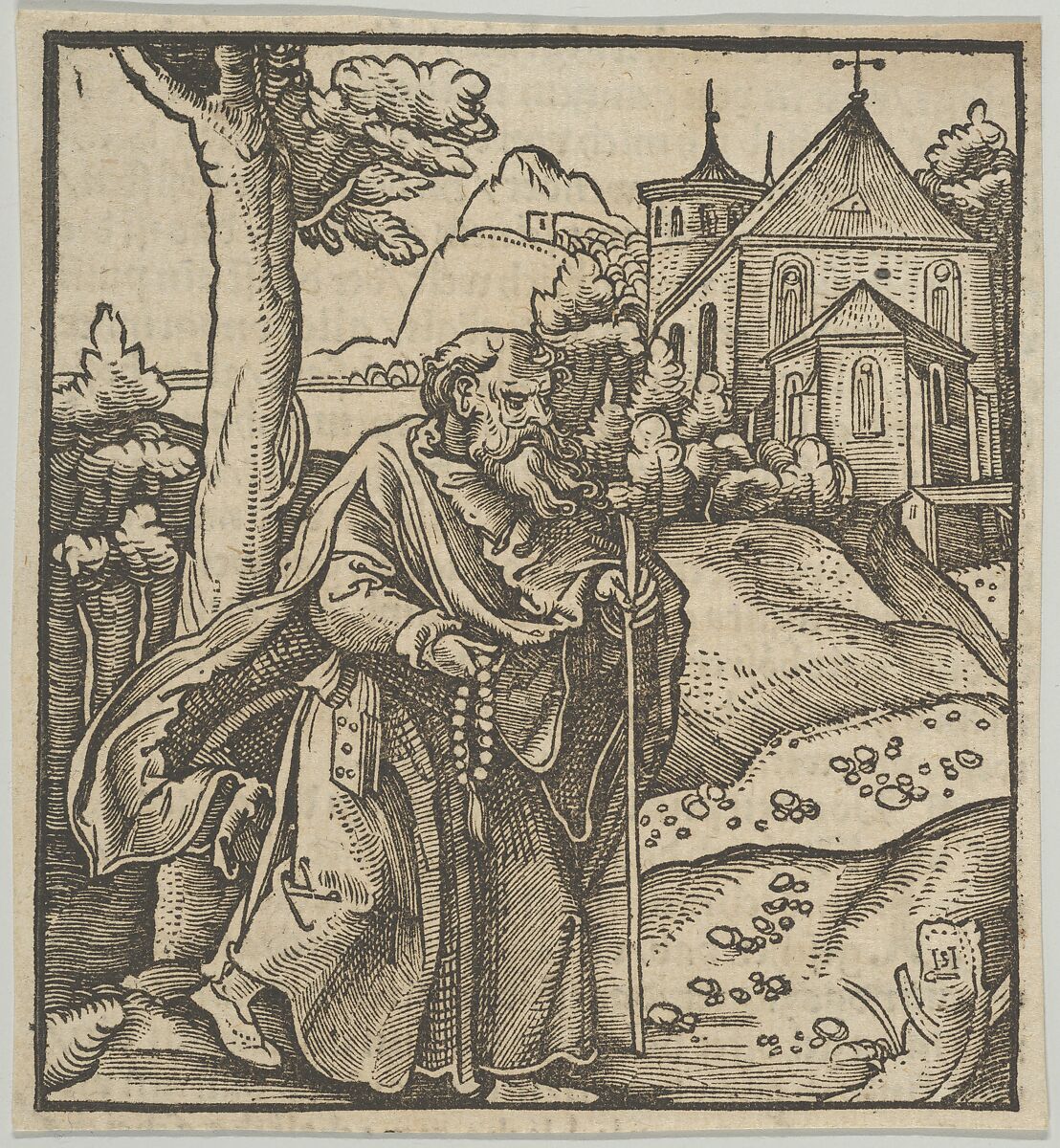 - Title: An Old Pilgrim Walking to the Right, from Hymmelwagen auff dem, wer wol lebt...